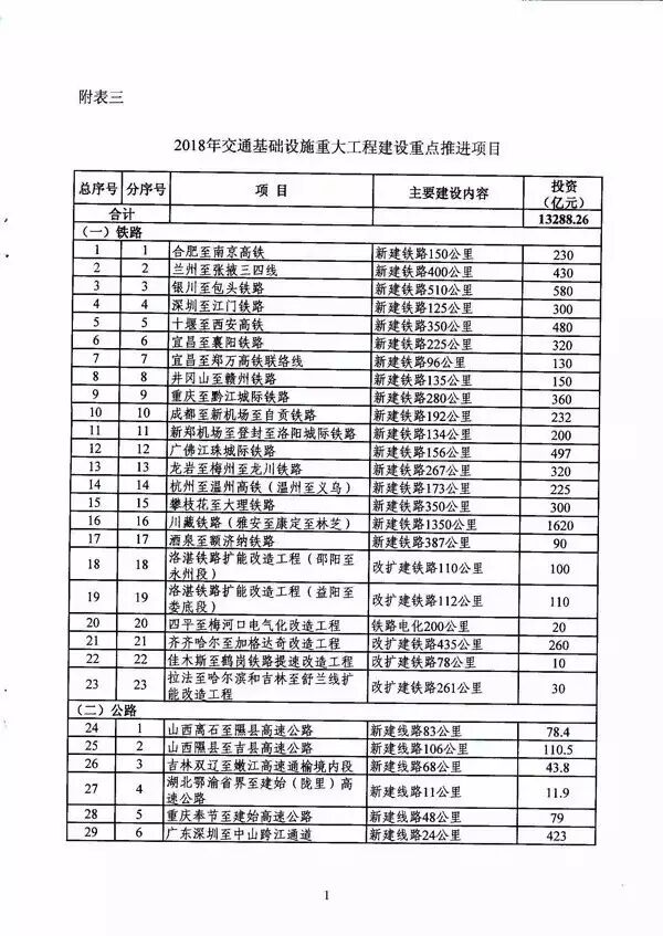 《行动计划》指出,2016-2018年,拟重点推进铁路、公路、水路、机场、城市轨道交通项目303项,涉及项目总投资约4.7万亿元,其中2016、2017、2018年分别为2.1万亿、1.3万亿和1.3万亿元。