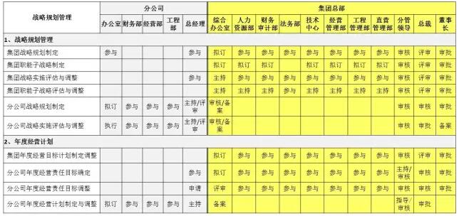 公司总部一般都有比较完善的标准化管理体系,但完全照搬到分公司是不适合的,特别是由二级管理过渡到三级管理的过程中。笔者在管理咨询工作中,发现公司总部和区域公司的职责经常不明确,要么管理内容重复导致各层级事务性工作量巨大,项目人员大量的精力耗费在应付检查和填写各种表单上;要么出现管理的盲区,总部和分公司的管理触角都没有涉及到。笔者建议建筑企业在总部原有管理体系的基础上进行延伸和优化(其核心权责划分清晰):首先完善原有的制度体系,覆盖区域公司的管理;其次是结合区域公司的成熟度对权限进行划分(可每年进行一次评估,然后进行分级授权,如:表二);最后是细化操作规程,特别是总部各专业条线一定要强化平台和数据库建设、设计好模板和表单,同时利用好去项目做履约检查的机会多做示范和培训,也可以在总部安排交流培训岗,让各分公司、项目部的业务人员来学习(一般不超过半年)。