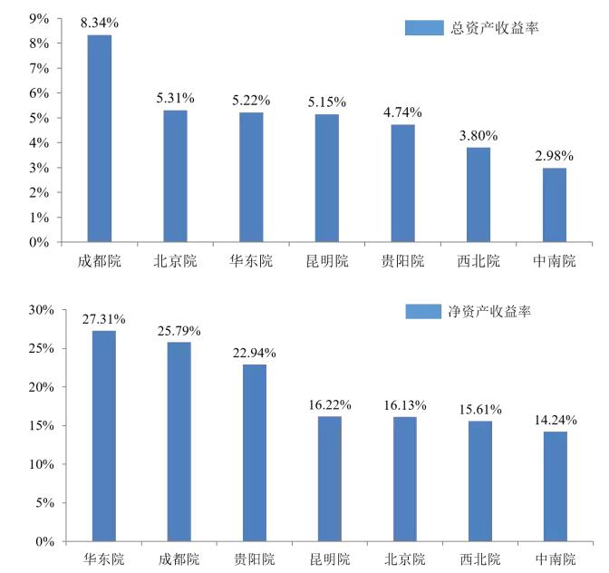 成都院总资产收益率最高,且负债少,说明成都院的经营能力和竞争力都是很强的;
