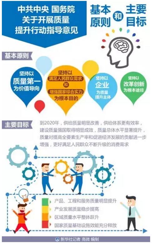 2017年9月13日中共中央、国务院发布《中共中央 国务院关于开展质量提升行动的指导意见》(以下简称《意见》)。据专家表示,此次质量工作的纲领性文件对推动我国质量发展具有里程碑式的重大意义,释放“质量第一”的强烈信号,将积极推动我国进入“质量时代”。