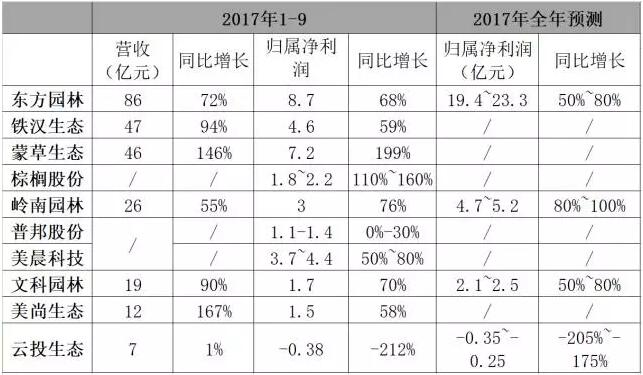 近两年,在建筑行业景气度下降的趋势下,园林板块的业绩表现却格外抢眼。随着三季度经营数据相继披露,2017年园林企业业绩的高增长得到进一步印证。
