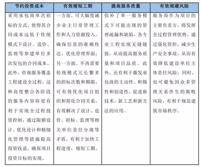 以前我国传统的建设模式是将建筑项目中的设计、施工、监理等阶段分隔开来,各单位分别负责不同环节和不同专业的工作,这不仅增加了成本,也分割了建设工程的内在联系,在这个过程中由于缺少全产业链的整体把控,信息流被切断,很容易导致建筑项目管理过程中各种问题的出现以及带来安全和质量的隐患,使得业主难以得到完整的建筑产品和服务。而实行全过程工程咨询,其高度整合的服务内容在节约投资成本的同时也有助于缩短项目工期,提高服务质量和项目品质,有效地规避了风险,这是政策导向也是行业进步的体现。