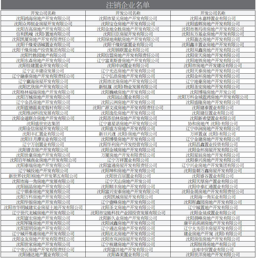 沈阳市建委决定注销上述企业的《房地产开发企业资质证书》。