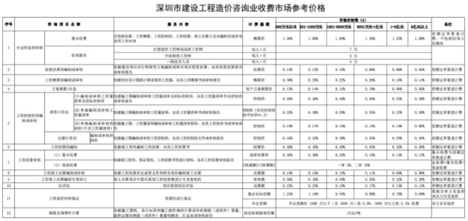 2.全过程造价控制若部分阶段的服务内容不实施,则扣减相应阶段的费率;