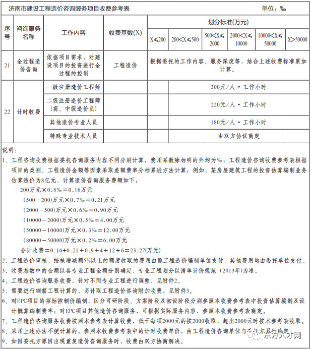 一、本表收费实行差额定率分档累进计费,当单项工程咨询服务收费不足3000元的按3000元计;