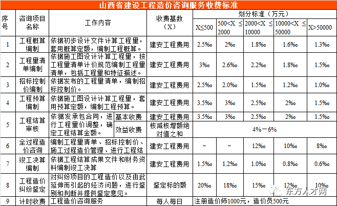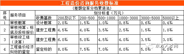 1、工程造价咨询服务收费额低于3000元的,按3000元收取;