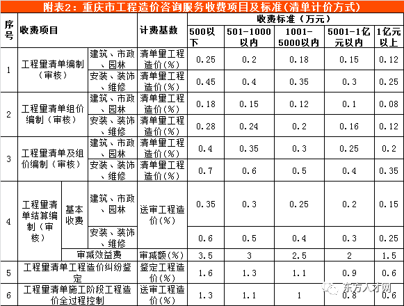 1、单独编制工程量清单咨询服务按“2.编制工程量清单及计价”同档费率的60%计费;