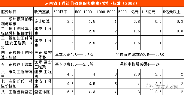 4、工程造价咨询服务收费额低于2000元时,按2000元收取;