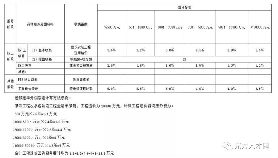 1.工程造价咨询收费基准价根据项目的类别、工程造价金额等因素采取差额费率分档累进方法计算;