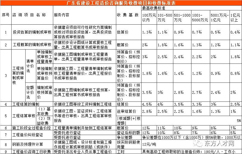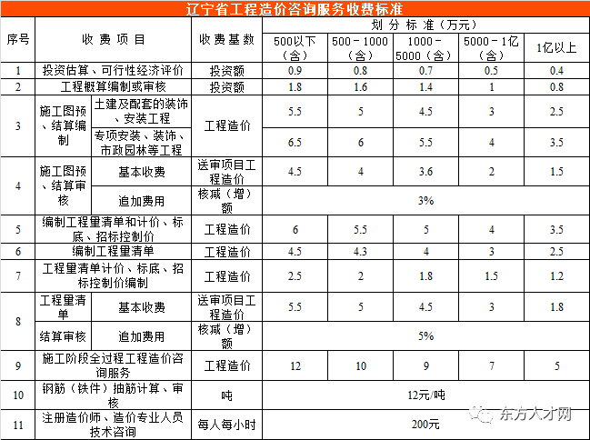 3.工程造价咨询服务收费,可针对不同专业工程进行调整,见下表。