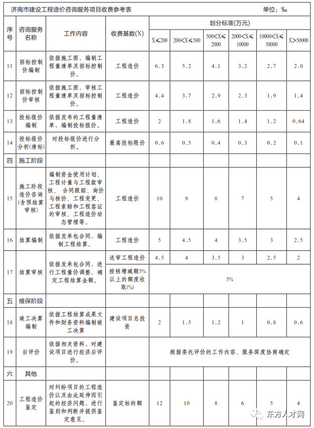 2、表中“计费基数”是指委托方委托的单位工程造价;